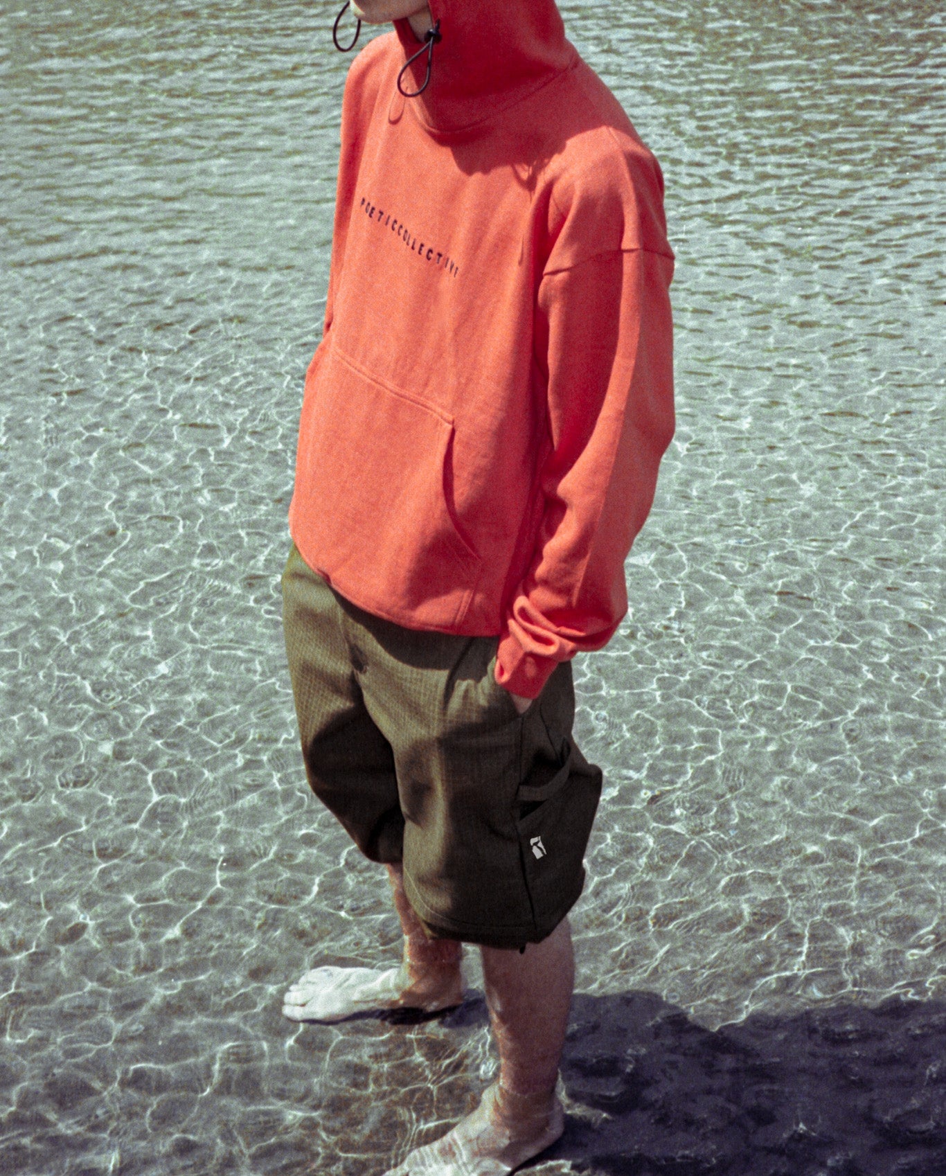Drawstring at bottom of leg.